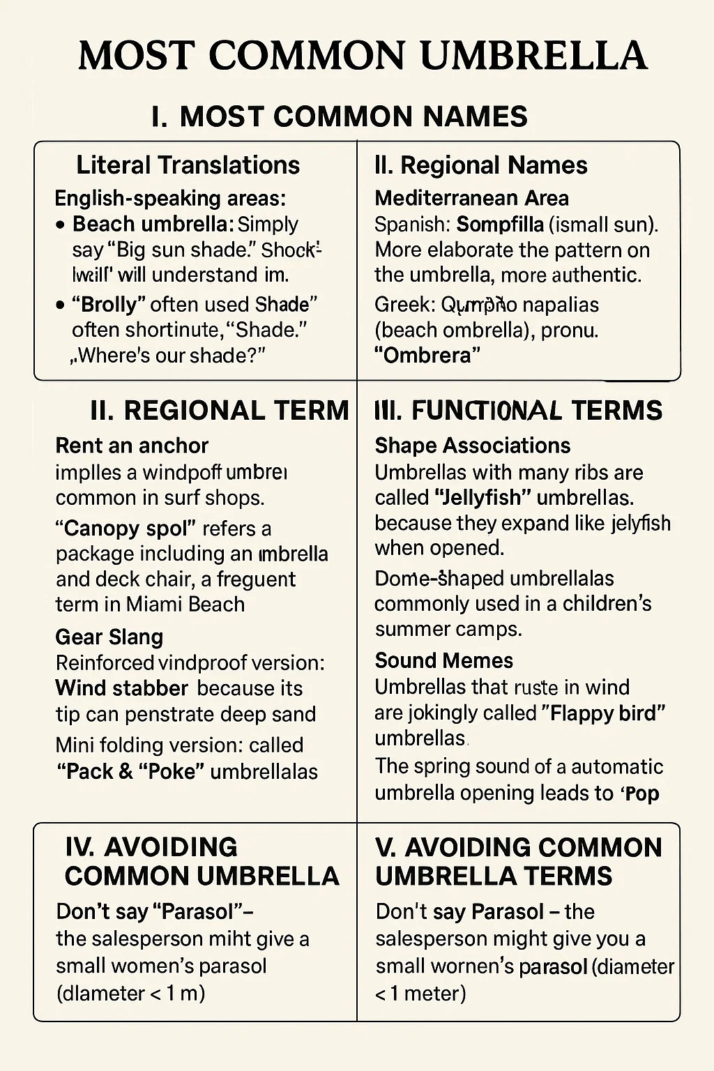 Anglicky mluvící oblasti: Jednoduše řekněte „Beach umbrella“. Obchodníci to okamžitě pochopí.